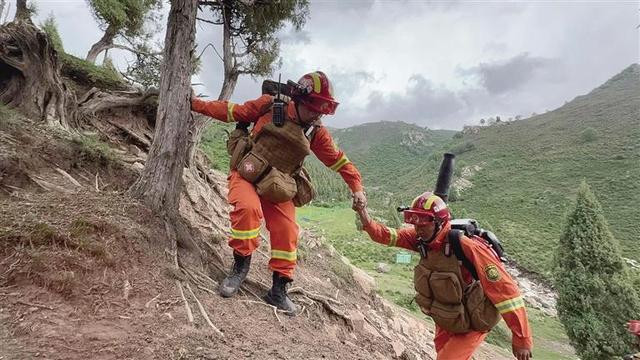 跟着队伍沿着蜿蜒的路径往沟里深入,起初脚下还是平坦规整的木栈道,可没走出半小时,便拐进了一片荒僻的、没有成型道路的山林。脚下的碎石子滑溜溜的,两旁的灌木枝不时钩住防火服的袖口,最陡的地方几乎是垂直的土坡。只见队员们背负着风力灭火机,恰似敏捷的山猴,那沉重的装备在他们身上仿若毫无重量。